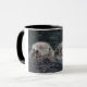Two sea otters "holding hands" - the perfect image to accompany any warm beverage.