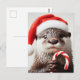 Otter Santa Hat Adorable Candy Cane Postcard