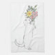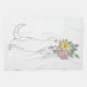 A line drawing of an otter, holding a bunch of colorful, watercolor flowers.