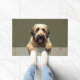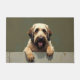 The earthy moss green background adds a natural and grounded feel, perfect for welcoming entryways. Designed with extra space at the top and bottom, it allows easy personalization with names, welcome messages, or custom text—making it ideal for unique dog-themed doormats and thoughtful gifts.