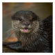 An Asian-short clawed Otter close-up as he came out of the water. The water drops still on his whiskers. When a mate moved, he looked around all surprised with his mouth open showing his teeth.