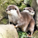 A watercolor design of a pair of very cute little otters.