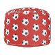 Seating ottoman pouf is shown in Red with a sports soccer ball print.