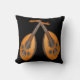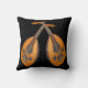 This throw pillow features two amazing ouds set against a black background. The oud is a pear-shaped stringed musical instrument commonly used in North African and Middle Eastern music. The modern oud and the European lute are both quite similar. The oud can be identified by its lack of frets and smaller neck. They are decorated with complex, intricate designs in black, silver and white which contrast beautifully with the gorgeous golden wood. The image is repeated on the back.