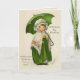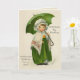 Young Irish girl holding a green umbrella and wearing a cap and shawl over her long green skirt. This vintage design has been hand retouched. Verse inside and customize signature area. More matching items in my store.