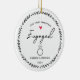 Simply perfect engaged couple First Christmas ornament featuring hand drawn diamond engagement ring with modern calligraphy and a tiny heart. Dated keepsake gift for your first Christmas. Visit our shop to view the photo version of this ornament.