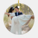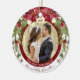 This elegant 2 photo 2 sided first Christmas married floral ornament features two of your own photos, with the front side featuring a red and green Christmas poinsettia wreath, the year, and the words, "Our first Christmas as Mr. and Mrs." with your own last name. This is the perfect ornament for the newlyweds, for the Christmas wedding, as a wedding party gift, and as a great way to start a years tradition of collecting a family keepsake.
