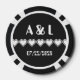Give the guests, bridesmaids, groomsmen, or anyone else attending or helping with your geeky wedding or special event a fun treat with these customizable poker chips. One side of the poker chip features a white pixelated heart on a deep onyx black background. The other side has a sample set of initials and date separated by a pattern of retro video game related 8-bit hearts. The sample text can be customized with your own details or a special message of your choice to create a unique and personal token to commemorate your big day. This design will match any product from the Our 8-Bit Hearts in Black line so that you can make your gaming themed wedding or special event as coordinated as you like.