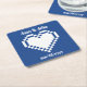 Protect your tables and create a coordinated look for your classic video game-themed wedding or event with these paper coasters, featuring a rich blue background decorated with a white 8-bit heart and some sample text that you can customize for your needs.