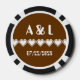 Give the guests, bridesmaids, groomsmen, or anyone else attending or helping with your geeky wedding or special event a fun treat with these customizable poker chips. One side of the poker chip features a white pixelated heart on a rich chocolate brown background. The other side has a sample set of initials and date separated by a pattern of retro video game related 8-bit hearts. The sample text can be customized with your own details or a special message of your choice to create a unique and personal token to commemorate your big day. This design will match any product from the Our 8-Bit Hearts in Chocolate line so that you can make your gaming themed wedding or special event as coordinated as you like.