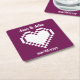 Protect your tables and create a coordinated look for your classic video game-themed wedding or event with these paper coasters, featuring a deep wine background decorated with a white 8-bit heart and some sample text that you can customize for your needs.