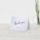 This simply designed typographic style wedding or any occasion thank you card features the text "Thank you" in a whimsical dark blue calligraphy style script on a mottled blue and white background - your custom text is matching dark blue - you can delete the "Our adventure begins" graphic from the inside of the card for a simple any time thank you card - by katz_d_zynes