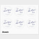 These simple "Our adventure begins" round wedding stickers feature your custom text in dark blue that matches the typographic element - by katz_d_zynes