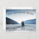 A rustic save the date photo postcard for the outdoorsy and adventurous couple, designed to accommodate your favorite horizontal or landscape oriented full-bleed engagement photo. "Our Adventure Begins" appears as a black overlay arching across the top, with your names, wedding date and wedding location at the bottom.