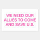 WE NEED OUR ALLIES TO COME AND SAVE U.S.. Conscious-Social-Commentary Splash-art sticker-design by Jeff Hankamer at Artjunkhaus