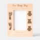 A personalized frame for a new baby boy. Sweet personalized gift for new parents with cute engraved teddy bear, names, birth date, weight and length.