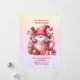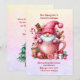 A cute girly cupful of pink gnome surrounded by presents and sweets, with a message from mommy & daddy. The back of the card has a message as well. Background is a sparkly colored paper