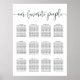 Wedding guest seating chart in classic black and white features "Our Favorite People" or your choice of text at the top in whimsical handwritten calligraphy script lettering, with your guest table assignments beneath. Space provided for up to 12 tables.