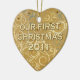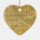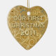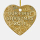 Our First Christmas 2011 ornament with an elegant jeweled gold heart. Beautiful ornament is printed on both sides.