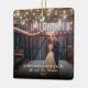 Customize this elegant 2 photo keepsake first Christmas as a married couple Christmas ornament with two of your own wedding or newlywed photos placed upon a wood panel background with mason jars and string lights. Includes the statement, "Our First Christmas as Mr. and Mrs.", your married names, and the year on each side. Easy to customize with your own photos. Start a new tradition to create your family's own personal ornament each Christmas. A wonderful gift to give to parents, grandparents, or to keep for yourself. Also available in other styles. See coordinating items in my Rustic Mason Jars and String Lights Collection in my Zazzle store: