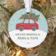 Celebrate First Christmas as Grandparents with this red car carrying a Christmas tree ornament. Enjoy this one of a kind design for a festive accent to your Christmas tree. It's easy to personalize to be uniquely yours.
