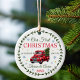 Celebrate your first Christmas as husband and wife with this charming personalized ornament! Our custom-designed keepsake features a nostalgic red pickup truck carrying a festive pine tree all ready to take home to decorate. Snowflakes and stars are scattered around the design. Customize with your names and the year to make it truly yours. On the reverse side is a perfect spot for your cherished photo, creating a lasting memory of this special holiday season. Share the joy of your love story with this unique holiday ornament! Edit text from the product page. To change font styles or colors, simply use the design tool!