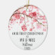 Our First Christmas as MR & MRS, cherry blossom tree, pink flowers, oriental, Asian, rustic Ceramic Ornament. Watercolor Christmas ornament.