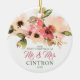 Our First Christmas As Mr & Mrs Peach Floral Ceramic Ornament . Personalize with your custom information on both front and back.