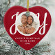 This keepsake, festive, red heart-shaped First Christmas as Mr. & Mrs. photo ceramic ornament is decorated with the word "JOY" in stylish white script typography. Easily customizable.