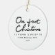 A meaningful Christmas gift for new parents. This holiday season, send out this beautiful keepsake photo Christmas ornament to new parents to commemorate the birth of their child. The ornament features " Our First Christmas " in a beautifully hand-lettered black color font. Personalize the ornament by replacing the sample baby name and the year.