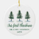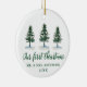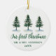 Our First Christmas Calligraphy Watercolor Pines Ceramic Ornament