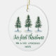 Modern Elegant Calligraphy Script, Watercolor Pine Trees, Our First Christmas Mr. and Mrs. Wedding Couple Ornament