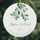 Our First Christmas Engaged Green Mistletoe Photo Ceramic Ornament