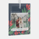 Our First Christmas Engaged Modern Foliage Photo Glass Ornament