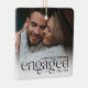 An elegant keepsake of your engagement year, this beautiful square ornament displays a favorite photo on each side, with "our first Christmas engaged" overlaid in black lettering accented with stars. Personalize with your initials and the year.