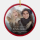 This Christmas tree ornament makes a wonderful keepsake gift for any newly engaged couple. The design offers a photo with a dark red border and overlay text for the couple's names and year.
