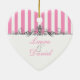 This pink and white striped ornament has silver scroll details and is customized as a First Christmas together keepsake. It matches the wedding collection shown below, and would make a nice keepsake of your special day, or a great gift for the newlyweds.