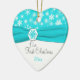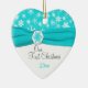 Remember your special day with this beautiful turquoise and white snowflakes, heart-shaped ceramic ornament with an aqua blue FAUX ribbon and snowflake medallion. You can customize the text to say whatever you wish. It also matches the turquoise and white snowflakes wedding collection shown below.