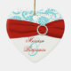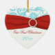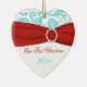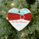 ****PLEASE NOTE that the ribbon and jewels are printed images, and are not real. This aqua blue, white and red damask ornament matches the wedding collection shown below, and would make a nice keepsake of your special day, or a great gift for the newlyweds.