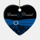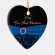 This cobalt blue and black damask ornament has a blue FAUX ribbon and jewel accent that matches the wedding invitation shown below. It is customized as a First Christmas together keepsake. It would make a nice keepsake of your special day, or a great gift for the newlyweds.