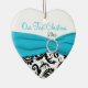 ****PLEASE NOTE that the ribbon and jewels are printed images, and are not real. This aqua blue, white, and black damask ornament matches the wedding invitation shown below, and would make a nice keepsake of your special day, or a great gift for the newlyweds.