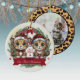 Celebrate the season with this playful "Our First Christmas", year and Let it Snow" ceramic ornament featuring a fun blend of leopard spots and cute cartoon graphics showcasing kittens with personalizable santa hats, along with a festive present and red kitty paws. Leopard Print frame place holder for your image. Customize by changing the text and/or names. Perfect for feline lovers, making it a great gift for any kitty enthusiast or animal print fan. Add a unique touch of wild holiday spirit cheer to your décor with this one-of-a-kind, purr-fect Christmas keepsake! 🐆🐈🐾⛄️