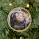 Our First Christmas Married 2 Photo Gold Christmas Ceramic Ornament