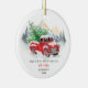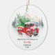 Classic Christmas holiday red truck ornament for first married Mr. and Mrs. Add the first name of the wife or husband on the reverse side and a short custom message. Add your names and the year just in time for the holidays as you spend your time together as a family. Makes a perfect keepsake gift for your son or daughter in law.