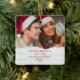 Celebrate a joyful 1st holiday as Mr. & Mrs. with a custom photo "Our First Christmas Married" round ceramic ornament. All text and images on this template are simple to personalize.
