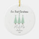 A fun ornament celebrating your first Christmas as Mr & Mrs, featuring a fun green Christmas tree image. There is a matching pattern on the reverse of the ornament.