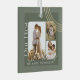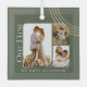 Minimal and modern simple three photo keepsake photo glass ornament to commemorate your first Christmas married. The design features a simple minimal design with a three square photo design collage to display your special wedding photo. Add your name along the bottom. Design by MoodthologyPapery