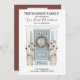 Hanging your hat in a new locale? Share the news in country chic farmhouse holiday style with this blue door adorned with a cute little bird sitting on a wreath, two photo "Celebrating Our First Christmas in Our New Home" design in light blue gray and dusky terracotta red. Simply add your return address, family and first names and message along with two photos and you are all set. Composite design by Holiday Hearts Designs (rights reserved).