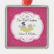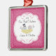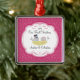 Our unique dated custom Our First Christmas Ornament features a cute bride & groom bird couple sitting in a birds nest set on a pink floral swirl background! Personalize with your information and date and you're all set to go! Wonderful dated keepsake gift for a couples first christmas and a great addition to you christmas ornament collection.