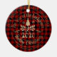 decorative holiday ornament with faux gold foil script for this pandemic year and decorative swirls on two different backgrounds red and buffalo plaid. encircled information is in elegant font ready for your customization along with your photo on the back